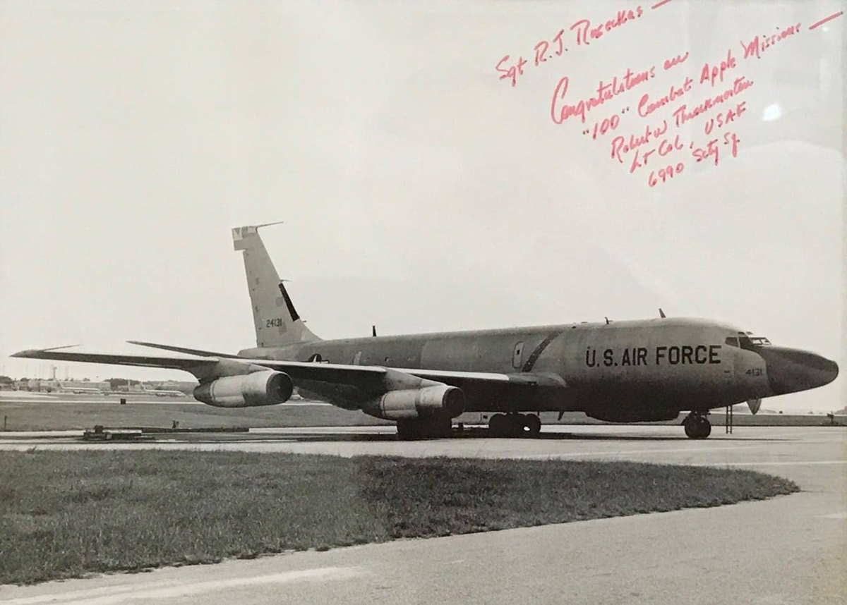 Our beautiful RC-135M at home at Kadena Air Base. The ‘hognose’ radome housed an extraordinary array of sensors, including a particular doppler radar system needed for unparalleled precision. Our mission entailed skimming along enemy boundaries. Straying even slightly into enemy territory would make us fair game for shoot down, as is illustrated in the KAL Flight 007 tragedy of 1983. (Photo provided by Robert Ruseckas)