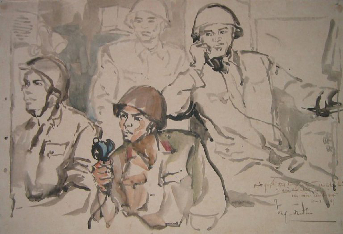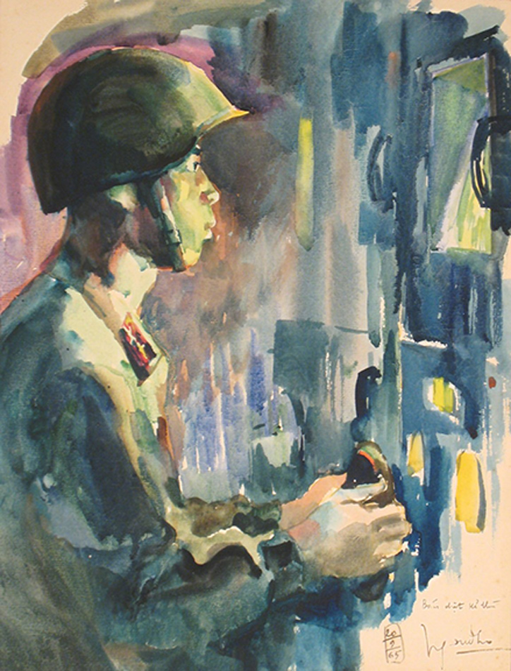 Inside the SA-2 control station. (Public Domain art by a North Vietnamese soldier.)
