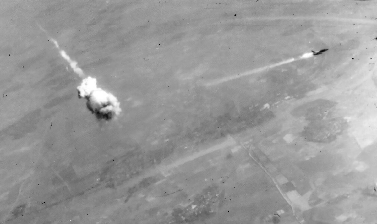 An amazing photo of an SA-2 damaging an F-105 over North Vietnam. (Public Domain)
