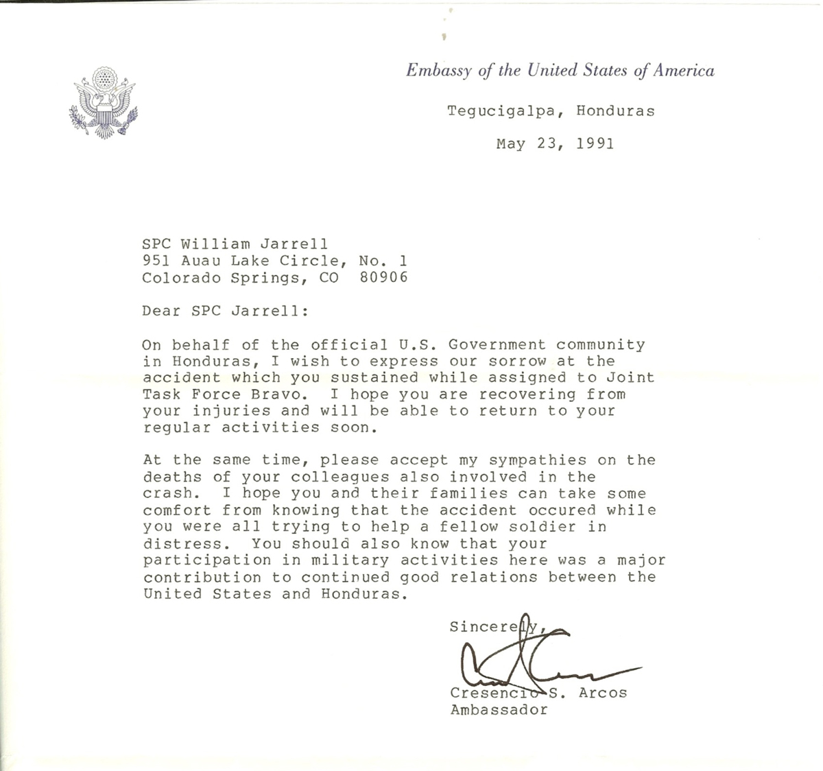 On July 20, 1992, CW3 Ernest McPherson, the past acting MEDEVAC detachment OIC for the 4/228th Aviation Regiment, submitted an awards packet to the Commanding General, U.S. Army Southern Command, in Miami, Florida. Chief McPherson recommended four Air Medals for Heroism, three of these posthumous, for the MEDEVAC crew that crashed on the evening of May 13, 1991, near the highly classified and secured TACAN radio / communications intercept site near La Paz, Honduras.