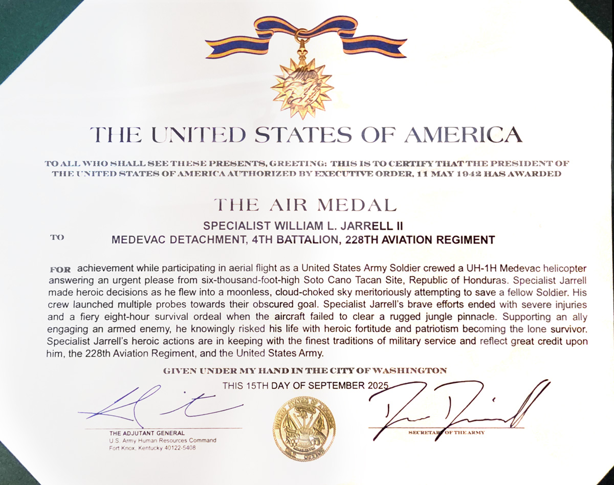 Following an inquiry from myself to Army HRC in the hopes of seeing possible Soldier’s Medals considered for this crew, CW5 Wesley Tuchtenhagen requested the personnel files of each individual after reading the Army’s official crash report as provided to me under FOIA. Tuchtenhagen discovered that soon after the crash an unusual number of congressional and media inquiries had been made to review these files. In an official letter to SFC (ret.) William Jarrell, the sole survivor of the crash, dated December 17, 2025, Major Francisco Bonglo II, Chief, Awards and Decorations Branch, offered the following: