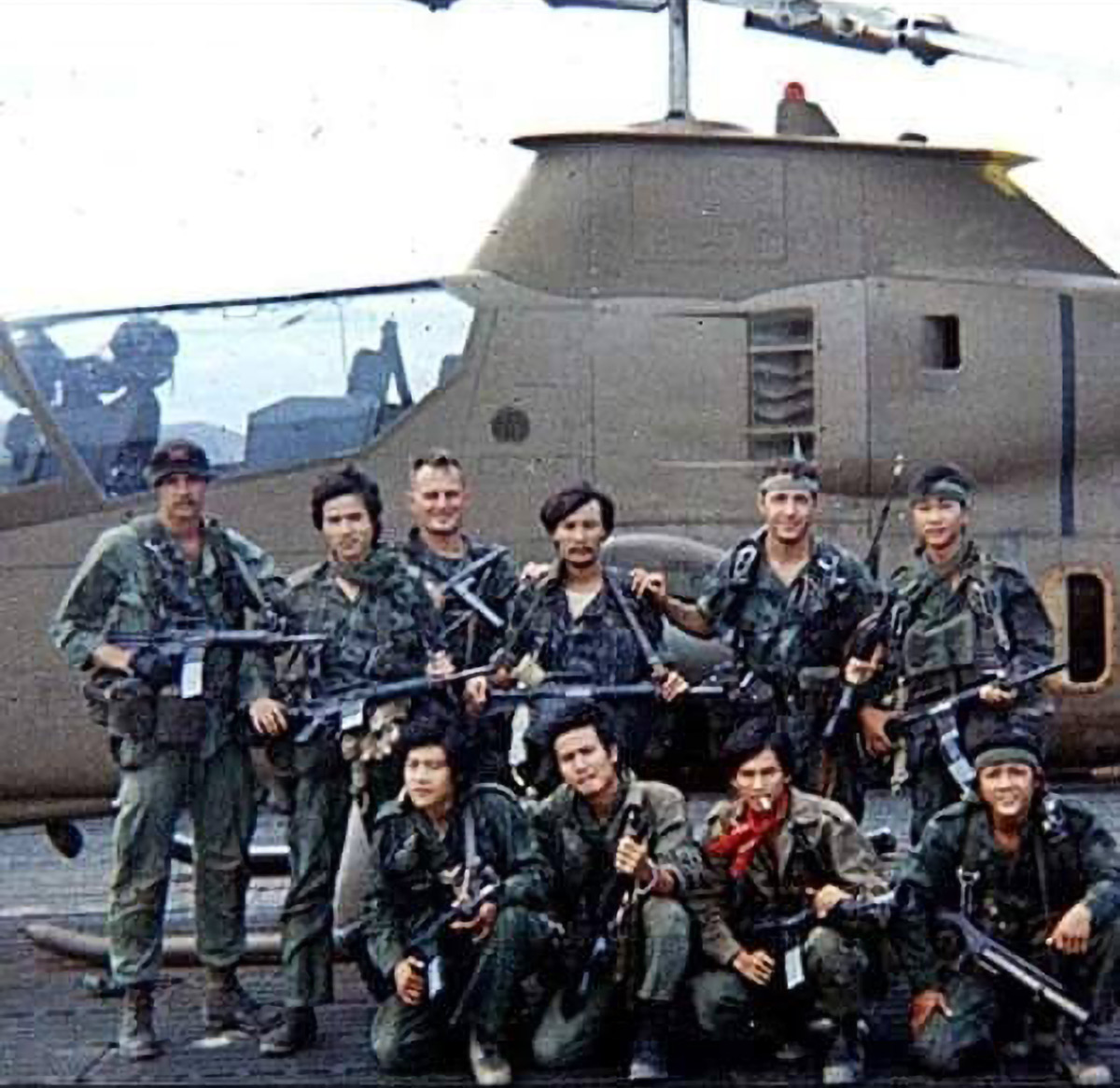 MG (ret.) Ken Bowra (rear, second from right) served with MACV-SOG (CCN) as a One-Zero recon team leader. He is shown here with RT Idaho at CCN. He would later command the 5th Special Forces Group, SOC-SOUTH, and USASFC, as well as a tour with the CIA. GEN Bowra also served in Honduras with a JSOC SMU. The man on his right is Do Ti Quang, Vietnamese team leader, who had served with Lynne M. Black Jr. on October 5, 1968 (https://www.specialforces78.com/9-sog-recon-men-vs-10000-man-nva-division/). Frank Pulley is the tall SF troop on the left. (Credit: MG Bowra Collection)