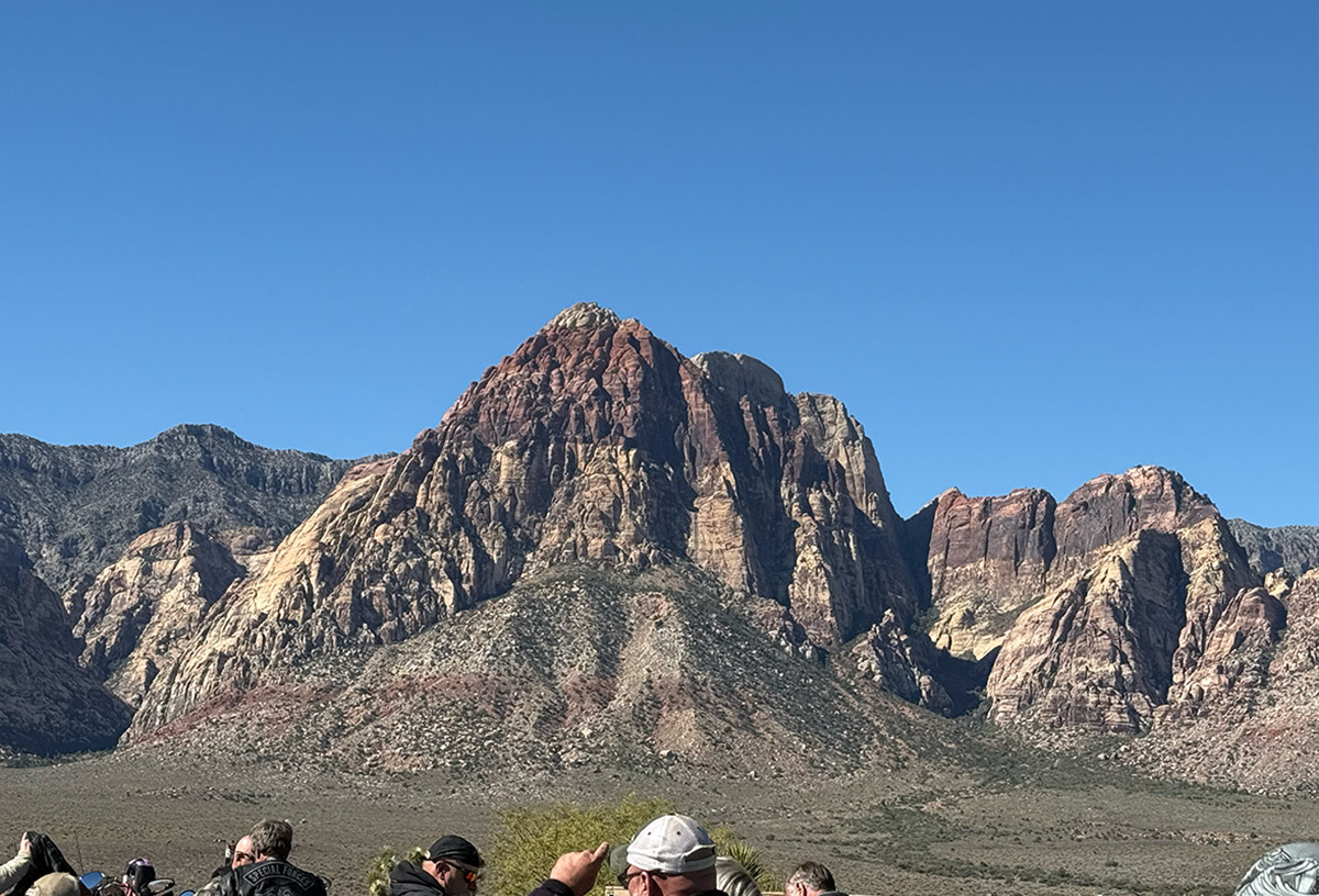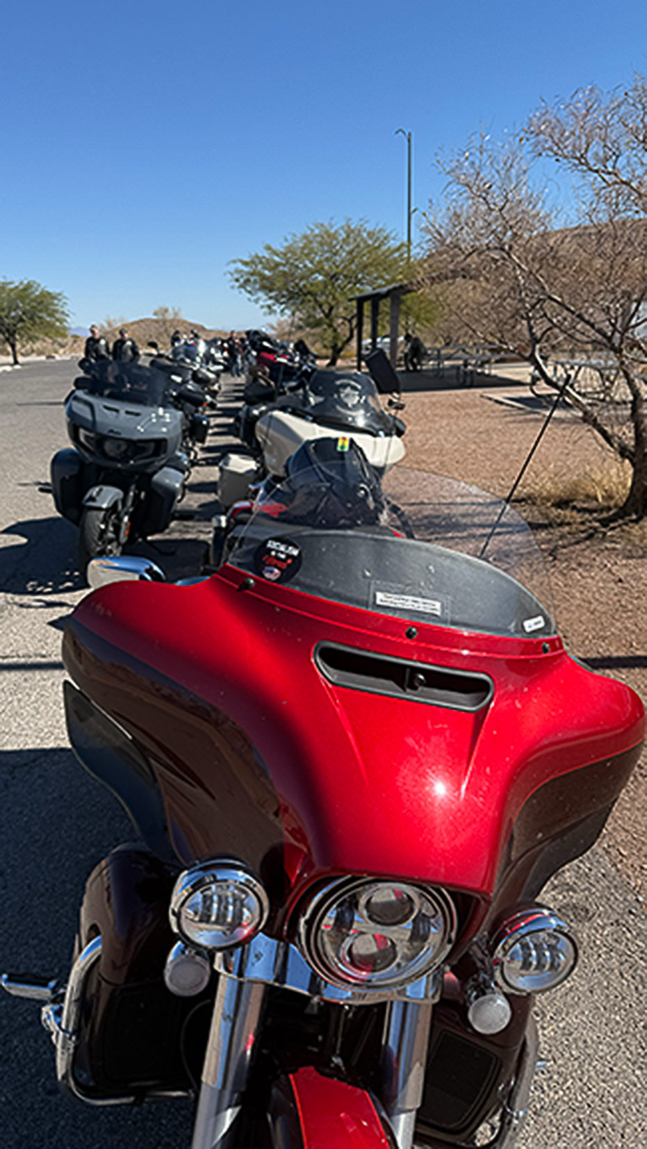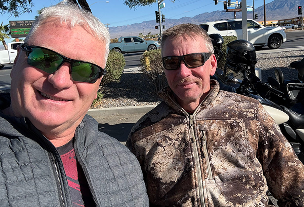 Taking more photos of the room, I noticed a man wearing a t-shirt with the striking logo for the convention’s annual motorcycle ride held earlier that day. His name was Dan Anderson (below, left), and he kindly shared photos from the ride for our readers. Since none of our chapter members typically attend this event, I was especially happy to be able include images of the ride this year. Though I’ve only ever been a passenger on a motorcycle, I could easily imagine the pleasure and beauty of that ride through the desert. I was grateful to be able to share the experience through his photos.