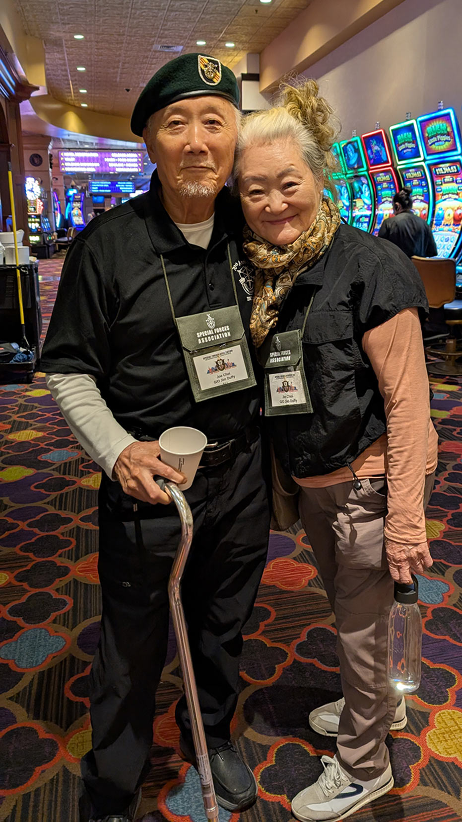 Following Bonnie’s advice that the registration area was the best place to “catch people,” I returned to that hallway and soon crossed paths with Steve Sherman of Chapter 39 and his wife, Nguyet. Steve is well-known to many of us as the unofficial historian of Special Forces, always ready to help locate teammates or track down a missing connection. He shared news of his latest release, A Factual History of the Vietnam War and Its Aftermath, published in April. He later allowed me to browse a copy—and I can tell you it’s a must-read.