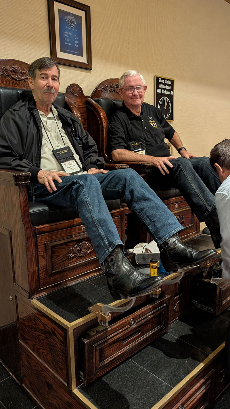 Wandering downstairs, I spotted a rare sight—a shoe-shine stand. Two SOA members were getting their boots shined, and one, Gene Pugh, struck up a conversation when I mentioned I was with the Sentinel. Gene told me about the MedEvac podcast, on which he and Travis Mills were interviewed in a series of episodes which cover the history of MACV-SOG. I knew immediately that our readers would want to know about this.