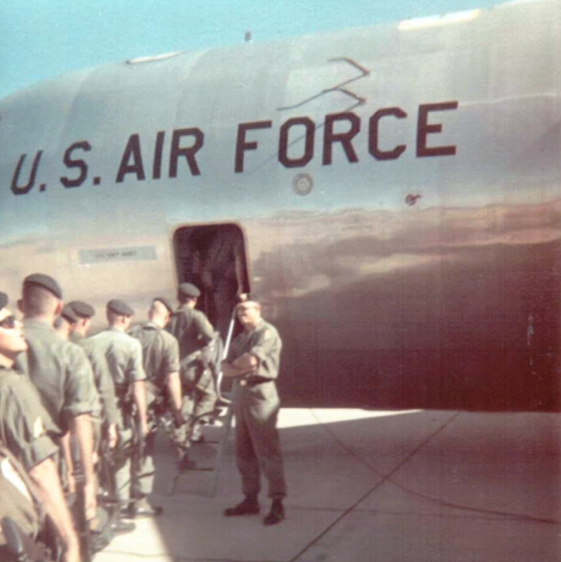 LTC Roger Pezzelli seeing off B-410 and its four subordinate A-teams at Pope AFB, 10 October 1966. Photo by SGM John Martin (USA SF, Ret.)