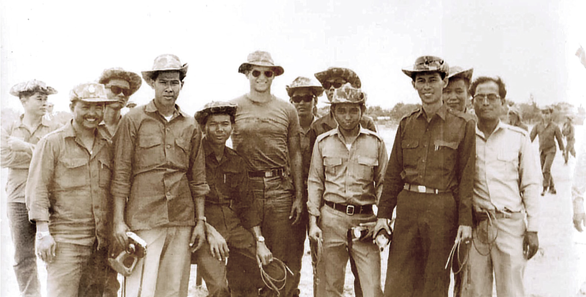 SSG John Martin, Co. D, 1st SFGA, with students of the Thai Railway Police Division who are learning basic and advanced demolition techniques and counter-sabotage tactics to better enable them to counter recent Communist insurgent activity. Photo by SGM John Martin (USA SF, Ret.)