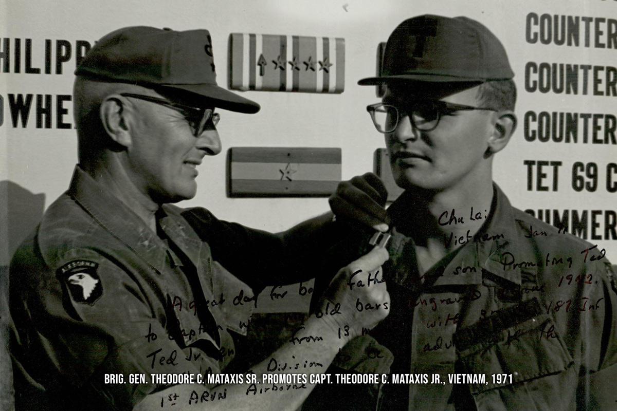 Brig. Gen. Theodore C. Mataxis Sr. promotes Capt. Theodore C. Mataxis Jr., Vietnam, 1971