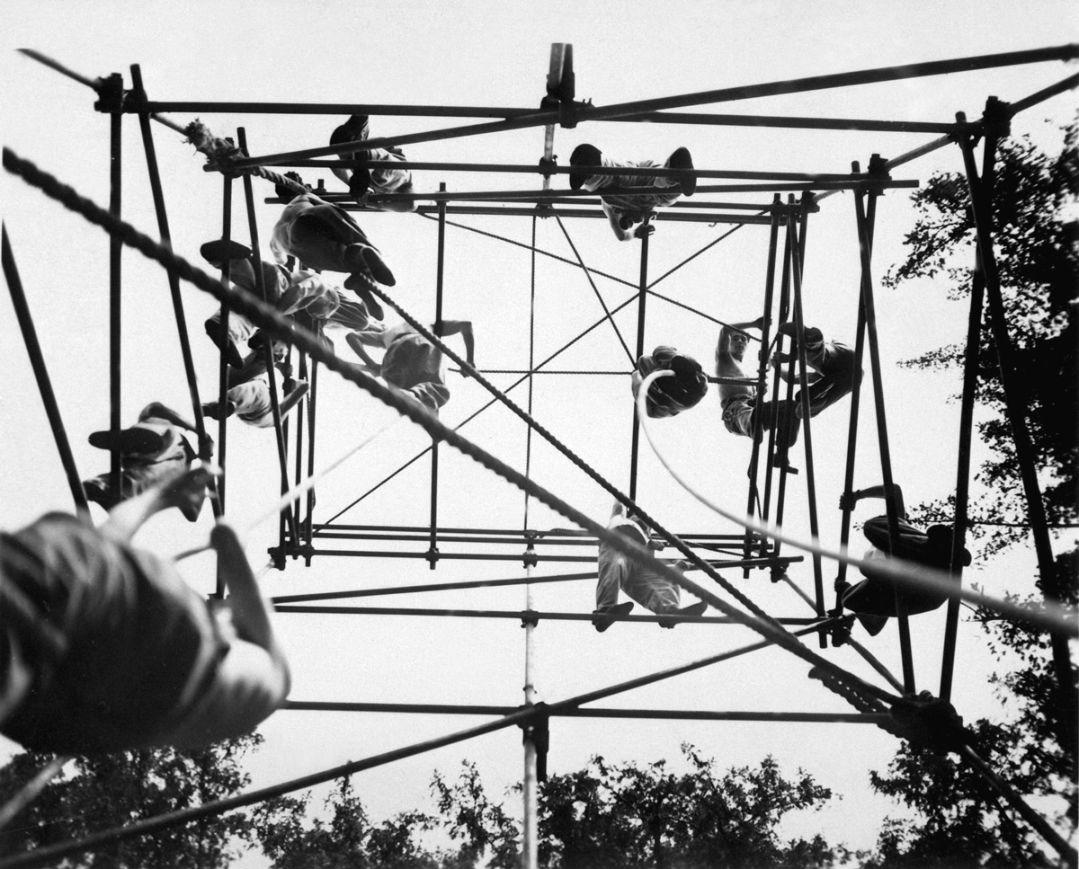 Jedburghs on high bars in obstacle course in Milton Hall, England. NARA FILE #: 226-FPL-MH-23 WAR & CONFLICT BOOK #: 737. ID: HD-SN-99-02396