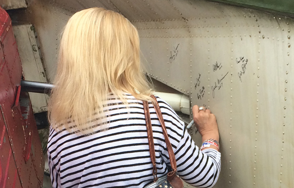Mel Swanson’s daughter signed the A1-H Skyraider that spread Mel’s ashes.